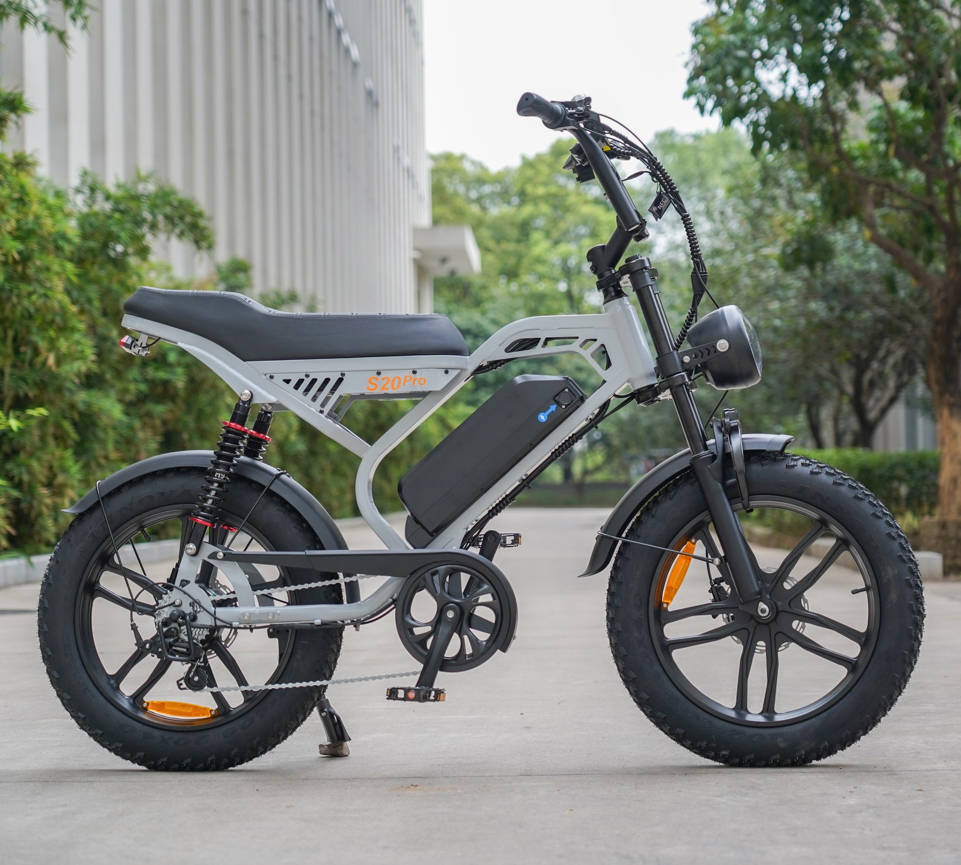 Equipped with a powerful 250W/750W motor and a 48V 18.2 Ah battery, it offers up to 60 km of range per charge. Built with a solid iron frame, 20" fat tyres, and dual rear suspension, it’s made to conquer everything from beach rides and bumpy trails to daily commutes.
